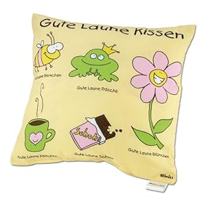 Blinies 41164 Kissen "Gute Laune" Top PreisPreis: EUR 9,95 Kostenlose Lieferung ab EUR 20 (Bücher und Blu-ray-Filme immer versandkostenfrei), auch bei allen Verkäufern, die "Versand durch Amazon" nutzen. Details